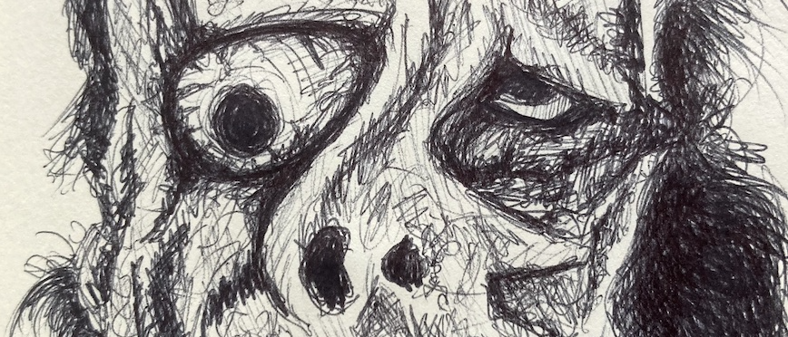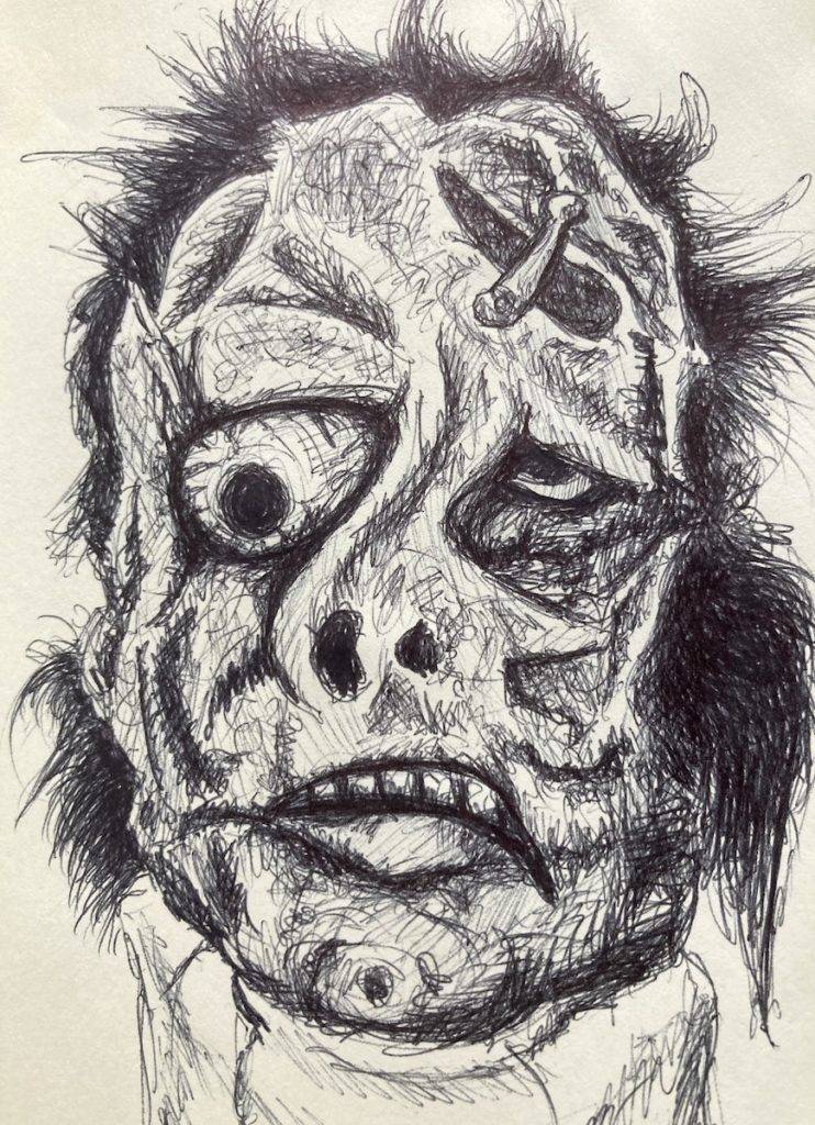 Happy Horror Friday! Here’s my second Halloween-themed drawing for October, this one from that 1957 B-movie classic, well maybe it’s not quite a “classic”, but a damn memorable title and creature, “I Was A Teenage Frankenstein”! I have never seen this movie, but have always loved the crazy creature design ever since I first saw it in the pages of “Famous Monsters of Filmland” magazine all those years ago. Growing up as a geeky, outsider kid with really bad acne, I related to monsters, felt like this guy some bad days in junior high. (sidebar – sometimes when I’m a bit down I remind myself, “At least I’m not in Junior High School anymore!” and that always lifts my spirits!) Besides the extreme, twisted damage to his face, I also like his crazy, shock hairdo.
