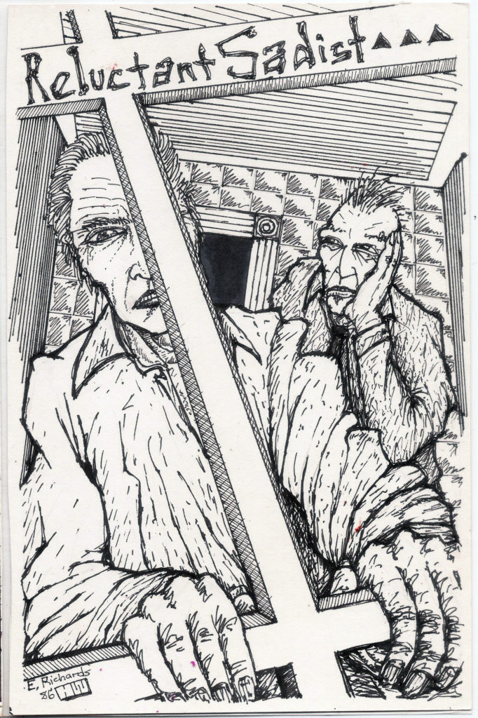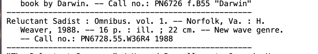 I don’t recall when and where I learned that some copies of RELUCTANT SADIST had made their way into a university’s library archive, maybe it was back in the 1990s, but I felt surprised and even a bit of pride. Back in the 1980s, when I was first creating my comix, it was part of an “underground” scene and not generally accepted by mainstream or academic culture. I’m not an academic, don’t have a formal four year degree, so I don’t think about how culture is studied on that level. There has been a sea change in how popular and underground culture is now being appreciated and researched in colleges and universities. It’s easy for big movies, books, comics to be added to a collection, but how does some hand-made, self-published comix or zine get noticed and acquired? And why does it matter?
